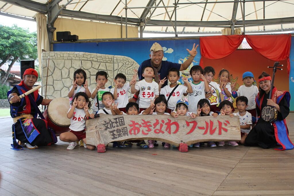 さて、きりん組のお泊り保育1日目‼先週の大雨で、予定していた水納島への渡航が出来なくなった事で、予備日の本日、先週のリベンジを果たす時が‼残念ながら体調不良の為1名お休みが出ましたが、17名で元気に南部の玉泉洞へGO‼きっと、生まれて初めての鍾乳洞体験だったでしょうね♪「怖いよ~」と腰が引ける園児も…。その後は、迫力あるエイサーやハブのアトラクション等を見学しました。園に戻ってからは、先週出来なかったBBQ、皆が楽しみにしていた花火を楽しみ、大満足の1日でした‼