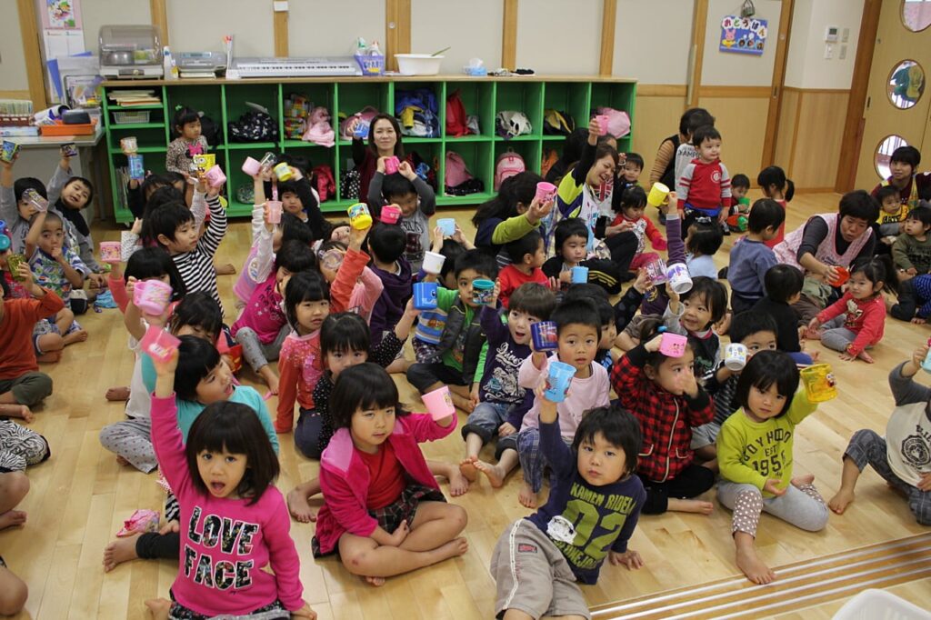 今日は、2014年最初の全体朝会。子ども達はタイトルの「あけおめ」ではなく、ちゃんと「あけましておめでとうございます!!」と上手に挨拶出来ました。今年1年、みんな元気で楽しく過ごせますように…と願いを込めて、お神酒ならぬカルピスで乾杯しました♪