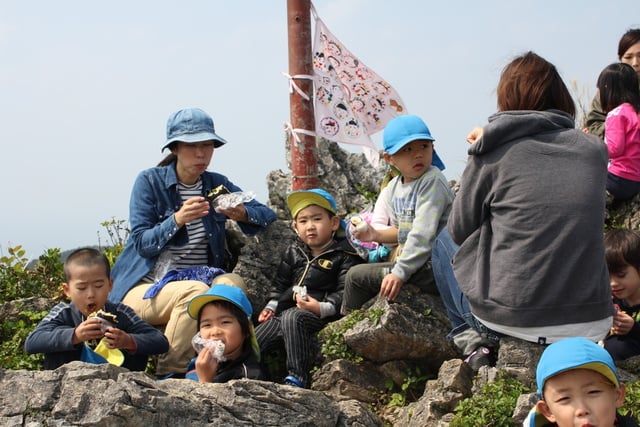 さて、お弁当会の昨日、卒園を目前に控えたきりん組のみんなは、なんと登山に挑戦‼八重岳の向こう側にそびえ立つ嘉津宇岳へのアタックです‼標高452mある嘉津宇岳は、沖縄本島内では3番目に高い山ですが、山頂までの道のりは、険しい獣道‼しかし、子ども達は互いに励まし合い、そして助け合いながら山頂にたどり着く事が出来ました。せっかく天気が良いので、山頂にてランチタイム♪愛情おにぎりを頬張る子ども達の姿は、どの子も達成感に満ち溢れていました。帰りも、安全に気をつけながら、ゆっくりゆっくり時間をかけて下山する事が出来ました。参加して頂きました保護者の皆様、誠に有難うございました。