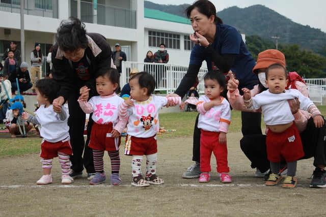 さて、美ら咲保育園の冬の風物詩「マラソン大会」が14日(土)本部小学校グラウンドにて行われました。寒空も何のその‼0歳児きゅーぴー組から4歳児きりん組まで、子ども達は元気に走り切りました。中でも見ものだったのが4歳児による「竹馬マラソン」10月に行われた運動会での「竹馬サッカー」から、今度はそれを使ったマラソンまで…何と凄まじい子ども達なんでしょう⁈