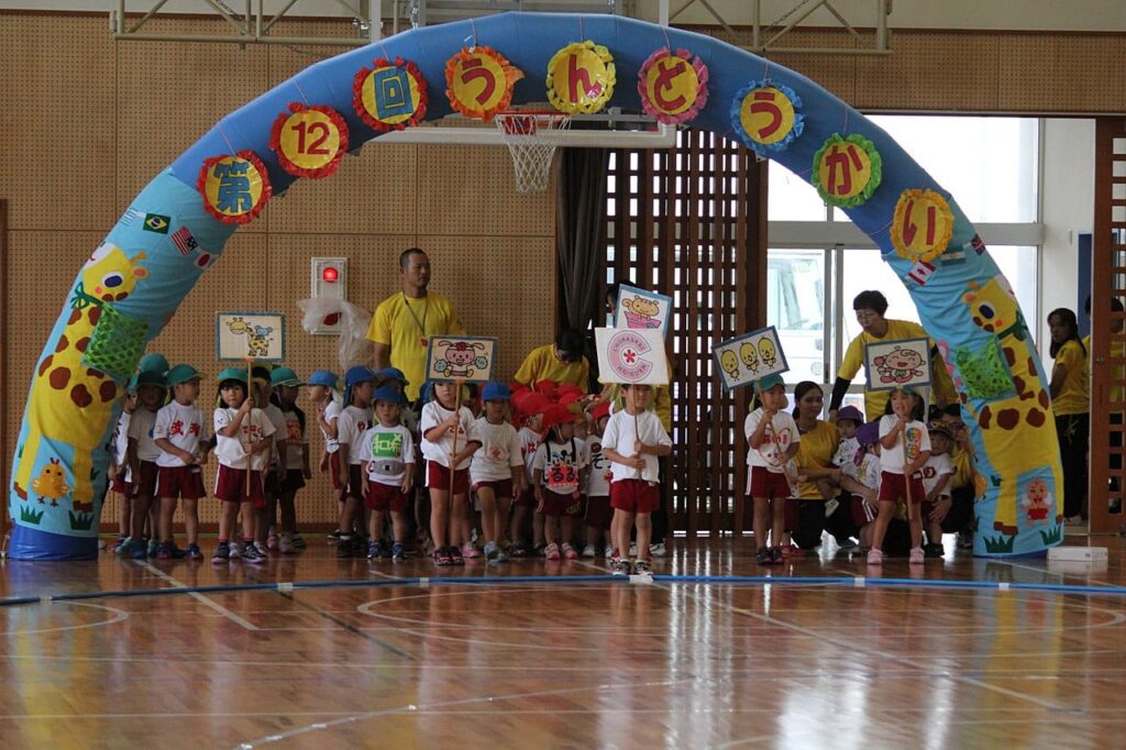 さて、先週の土曜日に本部小学校体育館で第12回運動会が行われました。今回は7年ぶりの屋外開催を予定してましたが、御願不足とテルテル坊主が足りなかった為か、当日朝まで悪天候に見舞われ泣く泣く体育館での開催に…(泣)練習やリハーサルなども屋外での実施だった為、当日大丈夫かな?と心配に…。