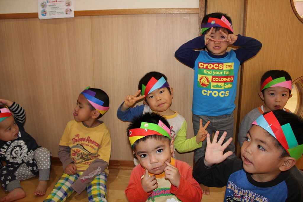 さて、月の最後はお誕生日会♪今月の主人公は、1歳児から4歳児まで7名の、そして今回は全員男の子なのです!!