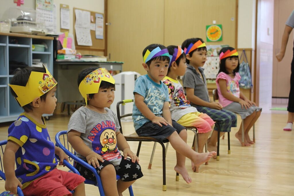 さて、月の最後は恒例のお誕生日会。今回は7名のお友達と先月お休みしていた1名が主人公です。今日から3日間本部中学校から職場体験に見えている6名の中学生も一緒に、たくさんのお友達と、お父さんお母さん、そしておじいちゃんもお祝いに駆けつけて下さいました!!2歳になったお友だちは、得意なエイサーをみんなの前で披露♪とても賑やかなお誕生日会でした。