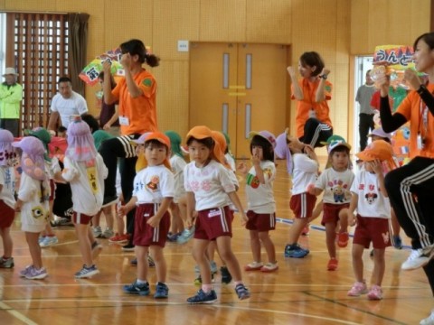 本日、10月13日(土)9時半より小雨の降る中、保育園の一大イベント『第38回ドリーム保育園うんどうかい』が行われました。予想降水確率が高く、今回も本部小学校体育館での開催となりました。子どもたちは連日の練習にも拘わらず元気いっぱい。