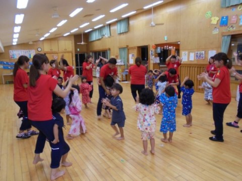 お泊り保育② 2019 8/11 ドリーム保育園からのお知らせ 2019年8月11日2025年6月8日 お泊り保育、夜の部はゲームをしたりホールで皆で思いっきり踊りました。園長先生がギター演奏でゲゲゲの鬼太郎を歌ってくれました。 ドリーム保育園からのお知らせ