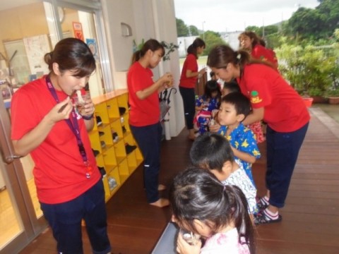 お泊り保育 2019 8/10 ドリーム保育園からのお知らせ 2019年8月10日2025年6月8日 今年度のお泊り保育は通常保育の中、行われました。 お昼寝の後、スイカ割りをしてそうめん流しを楽しみました。夕食は厨房の先生が作ってくれたお楽しみメニューを皆で美味しく頂きました。いつもは小食の子もおかわりをしていました!(^^)! ドリーム保育園からのお知らせ