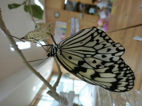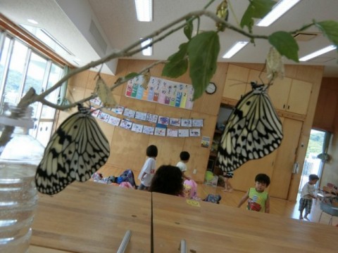 そら組の『オオゴマダラ』 2019 10/01 ドリーム保育園からのお知らせ 2019年10月1日2025年6月8日 黄金色したオオゴマダラの蛹(さなぎ) ちょうちょに変身 立派なオオゴマダラのちょうになりました!(^^)! 保護者からオオゴマダラの蛹(3個)を頂きました。 子どもたちの見守る中、見事に孵化しました。縞模様のきれいな『ちょうちょ』に変身しました!(^^)! ドリーム保育園からのお知らせ