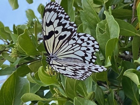 子ども達は、卵から幼虫、蛹そして蝶々に育っていく過程を目の前で観察することが出来ます。オオゴマダラは沖縄県のシンボル『県蝶』として2020年に制定され、日本の蝶としては最大種の一つです。