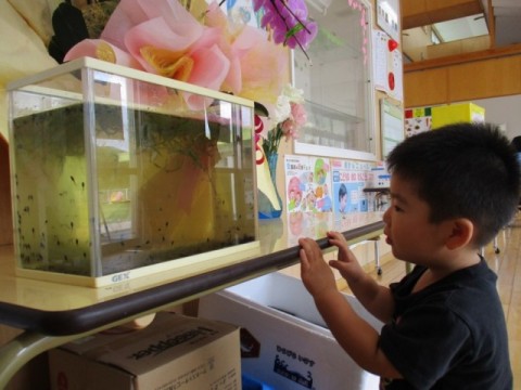 子ども達は、興味深々で登園と同時に観察し、降園時にも一度見てから帰る姿がよく見られます。