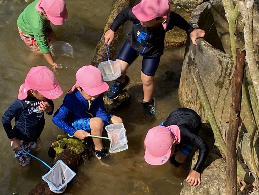 川あそび(並里編) 2020 10/15 風のわ保育園からのお知らせ もりもり組2回目の川遊び。エ~イ!! 今度は並里部落の川遊びです。少し気温も下がってきましたが、 川遊びとなるとみんな喜んではしゃいでました。 コロナ禍の中でも自然に触れる活動を楽しみたいですね。 子どもも、大人もみんな、目がキラキラしてました~♡ 風のわ保育園からのお知らせ