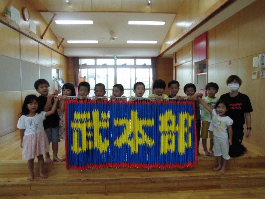 この1800羽の鶴は、風のわ保育園の職員で作り上げました。